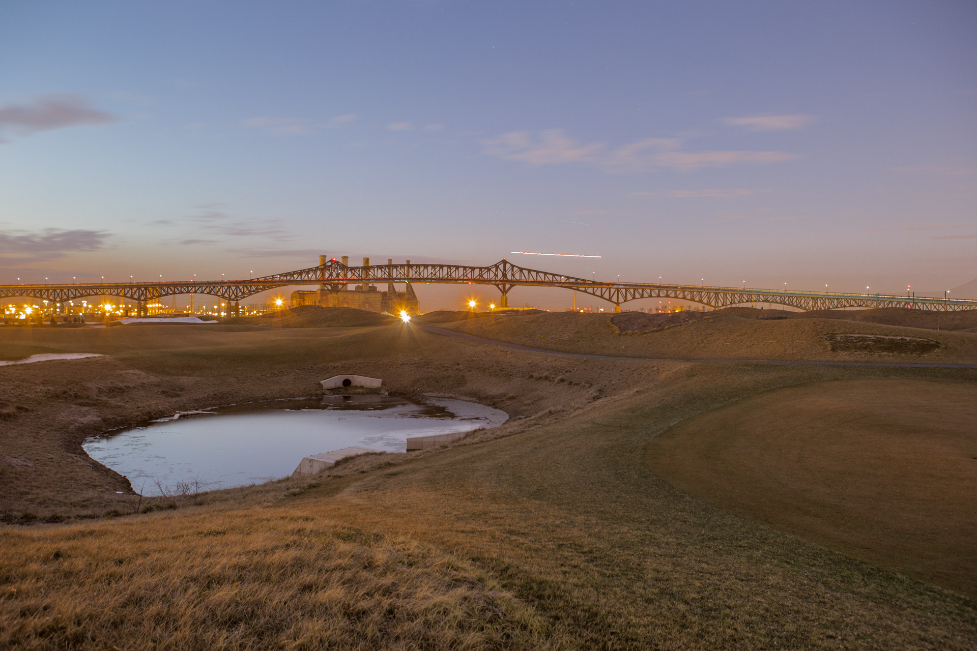 The Meadowlands of New Jersey are a large area of tidal swampland in the northeastern part of the state that is fed by the Hackensack and Passaic Rivers. Attracted by the low real-estate prices of these wetlands, agricultural and industrial land developers flocked to this area starting in the 1700s. They deforested, drained, and diked the landscape. The area was divided by railroads and highways and filled with massive amounts of trash. Factories, power plants and airports were built wherever possible, polluting the eco system to toxic levels. Nevertheless, big patches of swampland remained, and they still coexist with the industries and highways today. This once so-called ‘unproductive land’ provides us with a condensed view into the battle between the dominance of human landscaping and the resilience of nature. At night, when the contrast between nature and industry is at its most prominent, is the best time to capture this juxtaposition.